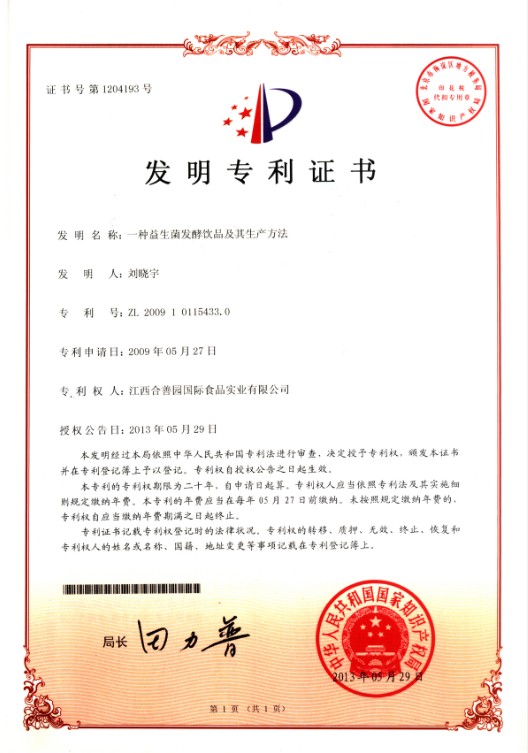 2008年之后的若干年,天意人陸續(xù)獲得了國(guó)家知識(shí)產(chǎn)權(quán)局頒發(fā)的EM原露及人飲的長(zhǎng)生態(tài)和植物胎盤(pán)素發(fā)明專(zhuān)利。